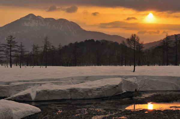 湿原の雪融け