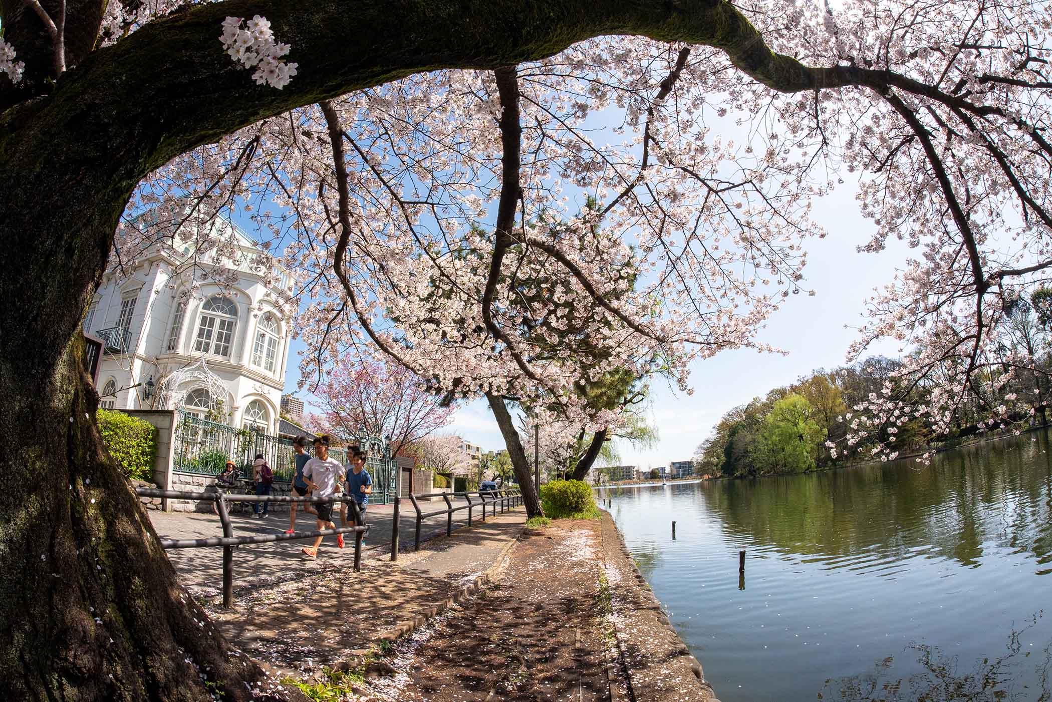 桜の下でランニング