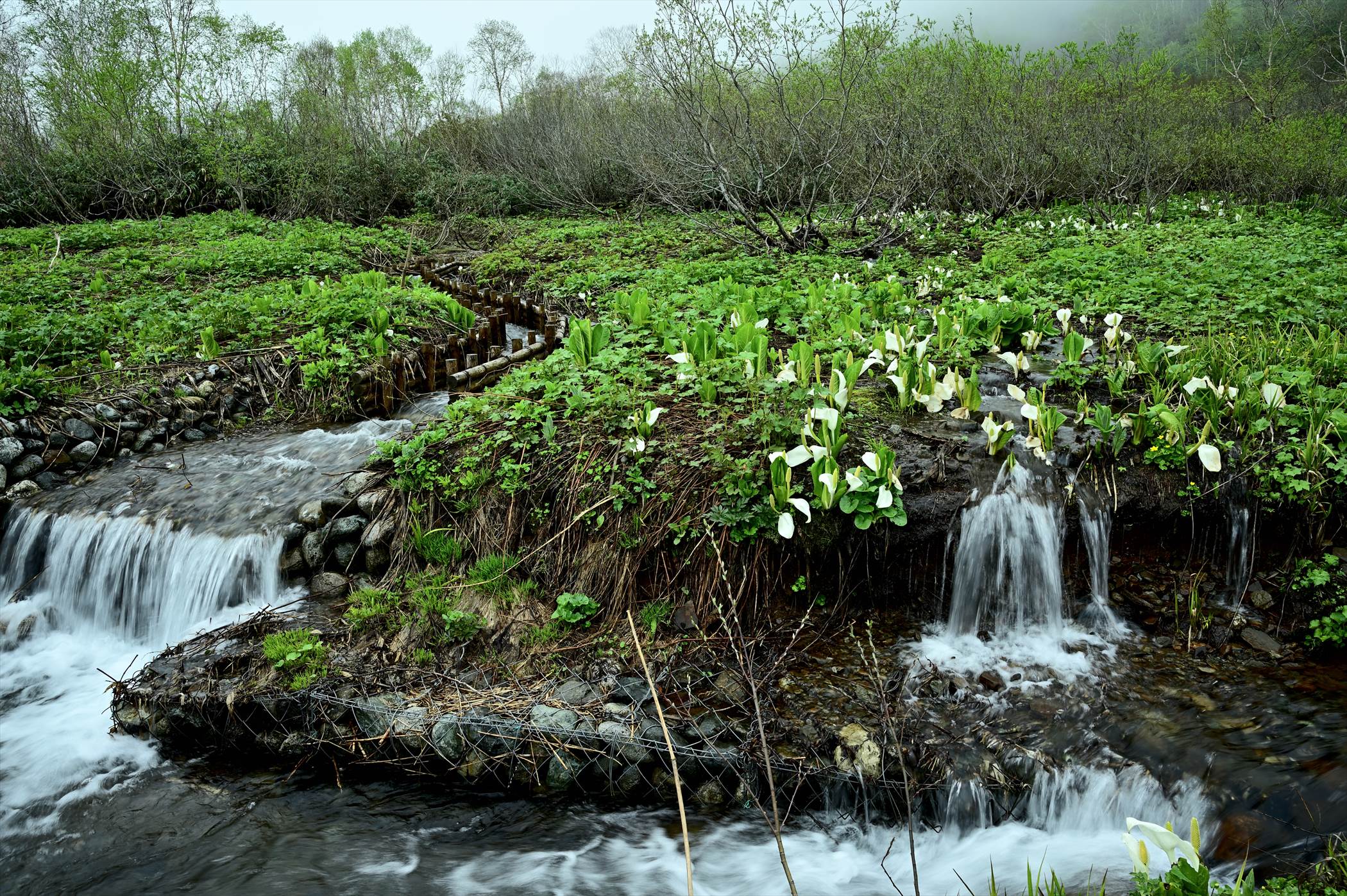 雪解け水潤すミズバショウ湿原