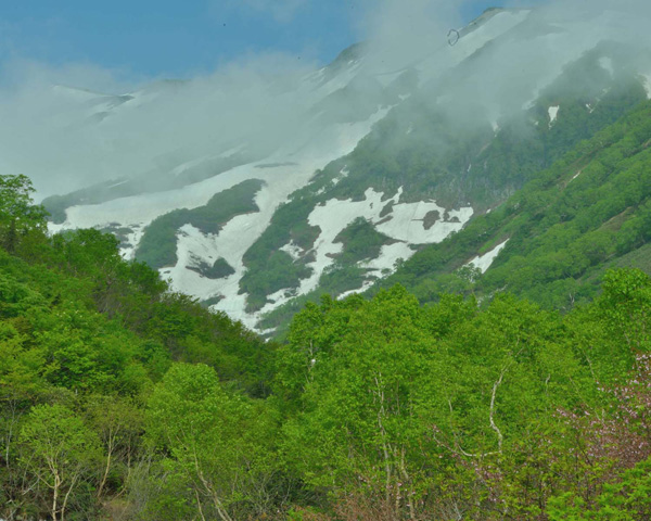 新緑残雪水芭蕉